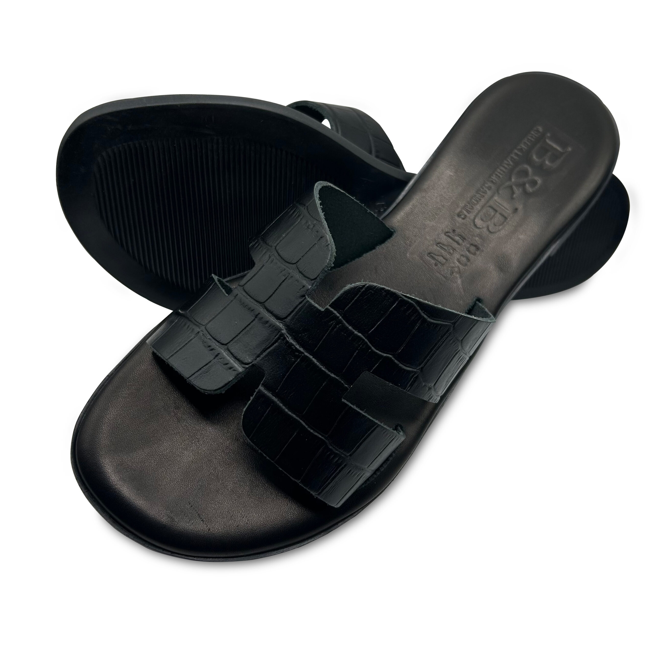 Black Croc Style Leather Sandal