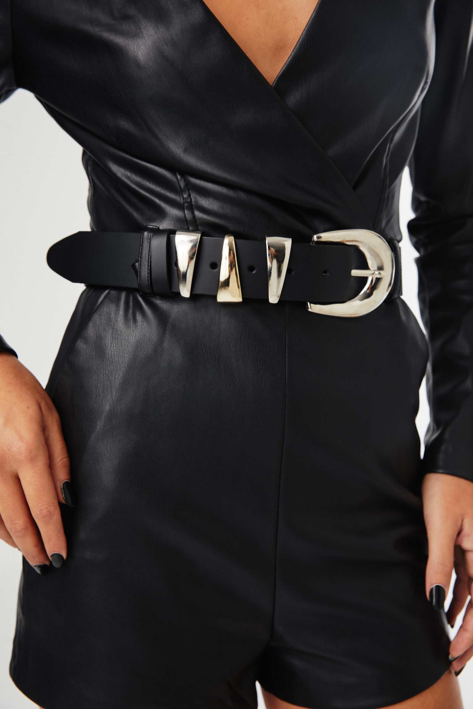 TRIPTYCH leather women’s belt with silver buckle and three loops in color combination.The two loops are nickel while the middle one is gold. Its width is 4 cm ideal to wear with your pants but also high at the waist.It is a particularly impressive belt that can be worn with simple everyday outfits and upgrade them.
