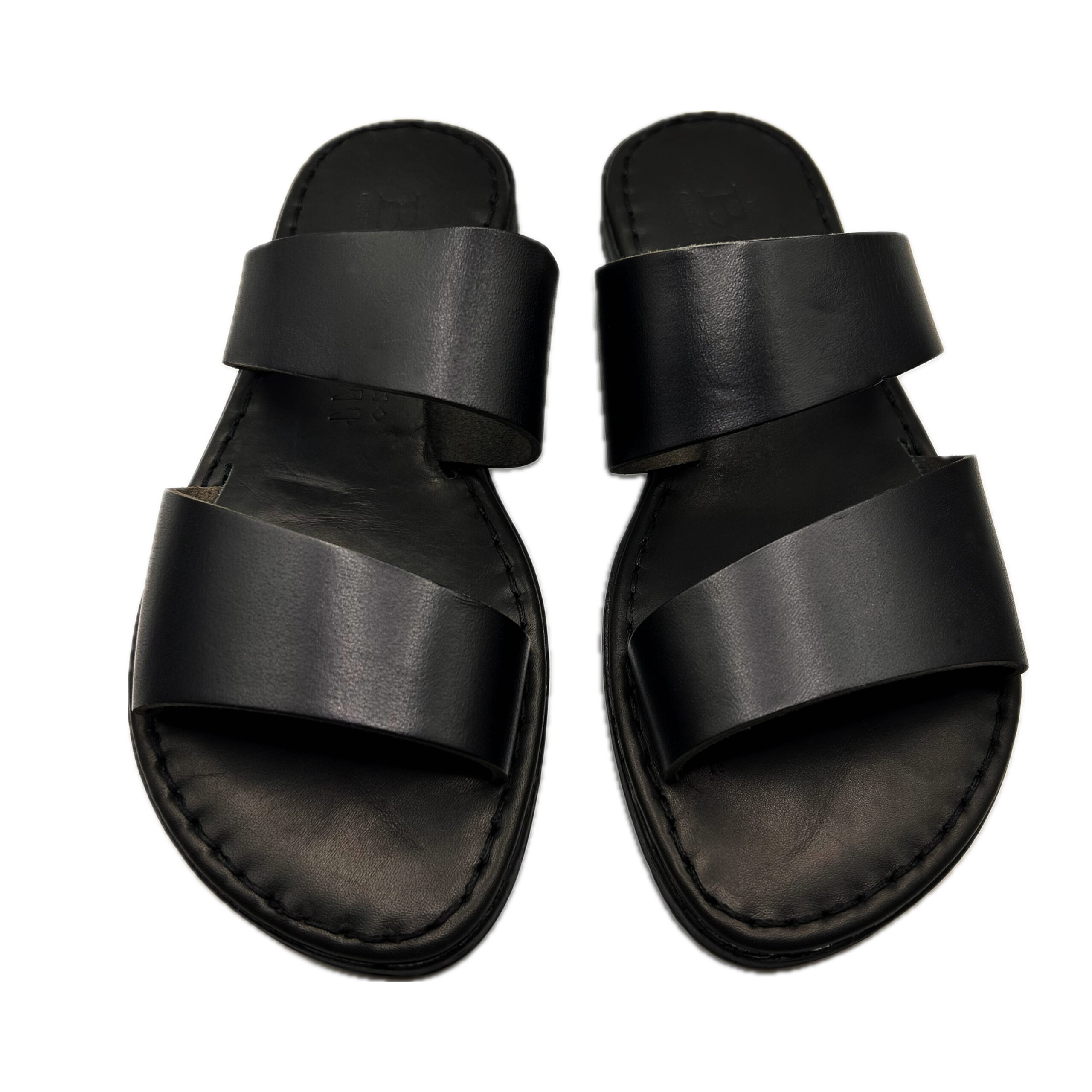 Black Two Strap Leather Sandal