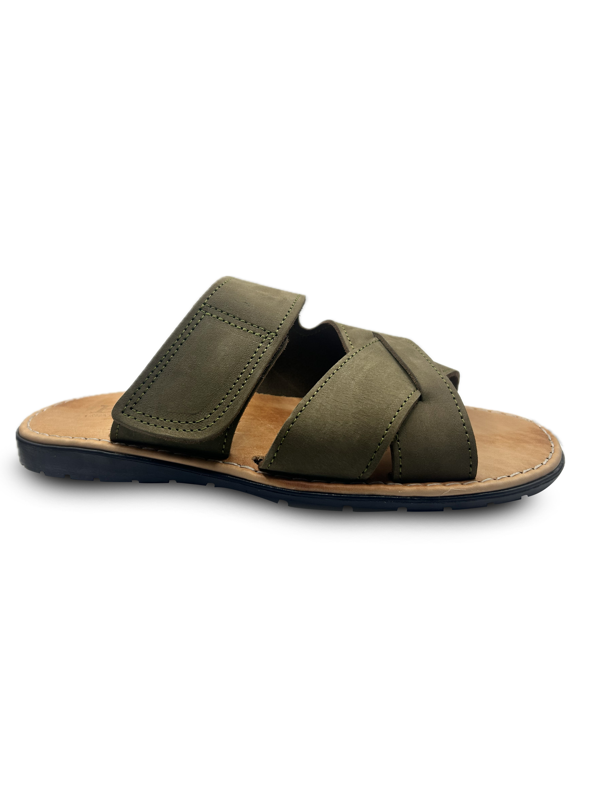 Khaki Crossed Strap Leather Sandal